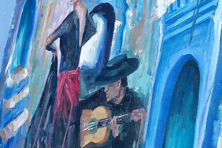 In our painting classes, we will take inspiration from the beautiful Andalusian art found throughout the blue city — its vibrant colors, intricate patterns, and peaceful vibes will guide your creativity.